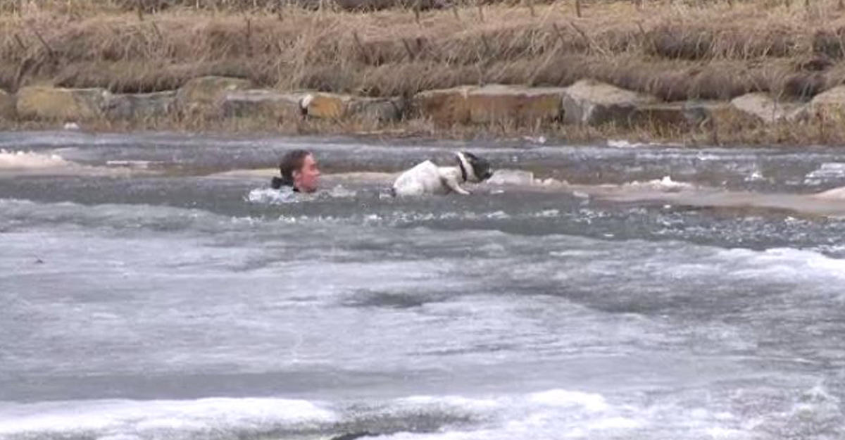 Житель Альберты Дункан Макивер бросился в ледяную воду за своим французским бульдогом Космо, когда увидел, что собака провалилась в полынью, передает Day.Az со ссылкой на life.ru.