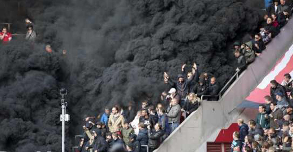 В Амстердаме во время футбольного матча "Эйндховен" - "Аякс" трибуны на стадионе погрузились в черное облако дыма, передает Day.Az со ссылкой на ntv.ru.