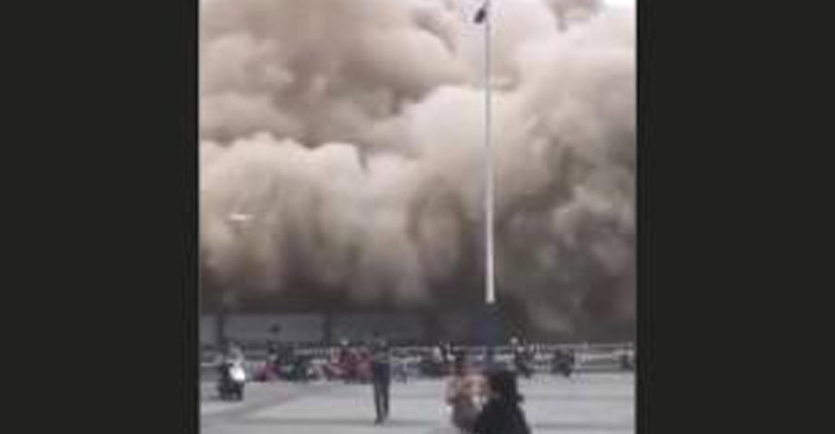 На видео, выложенном на YouTube, видно, как испуганные прохожие в панике бегут от падающего здания, спасаясь от огромного облака пыли.