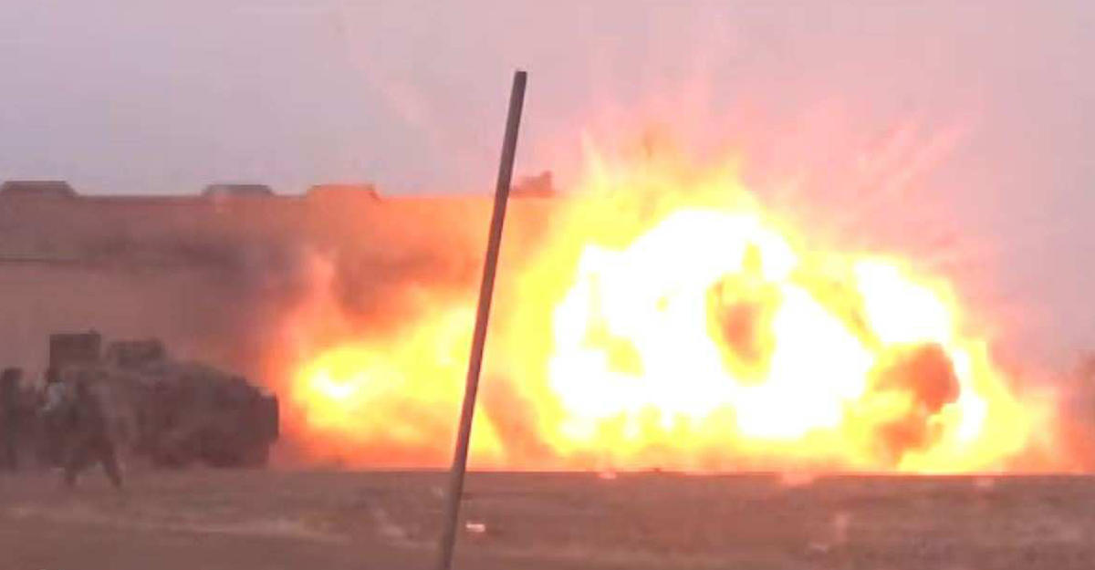 На видео запечатлена атака начиненной взрывчаткой машины на колонну из семи единиц бронетехники. Целью погони смертника является иракский танк, который взрывается на кадрах вместе с машиной, начиненной взрывчаткой.