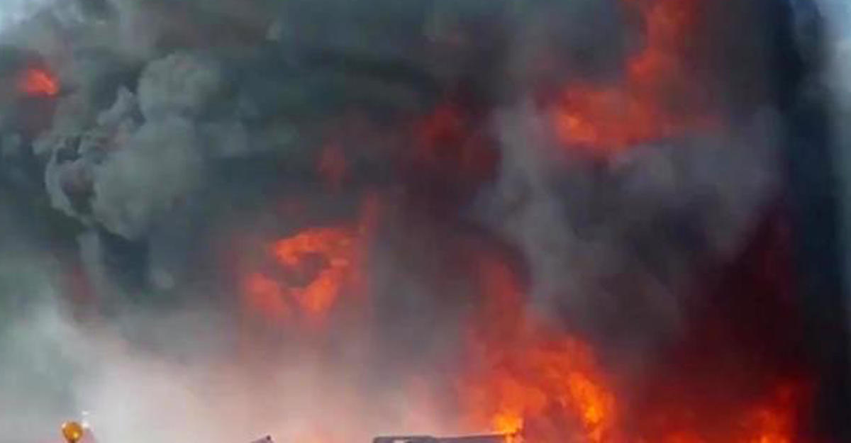 Фура за секунду превратилась в огромный огненный шар на оживлённом шоссе - ВИДЕО