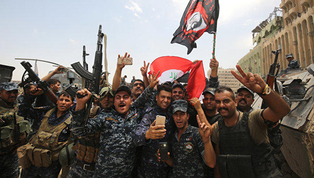 Бойцы подразделения по борьбе с терроризмом иракской армии подняли в воскресенье государственный флаг на берегу реки Тигр в исторической части Мосула, сообщает иракский телеканал Ас-Сумария.