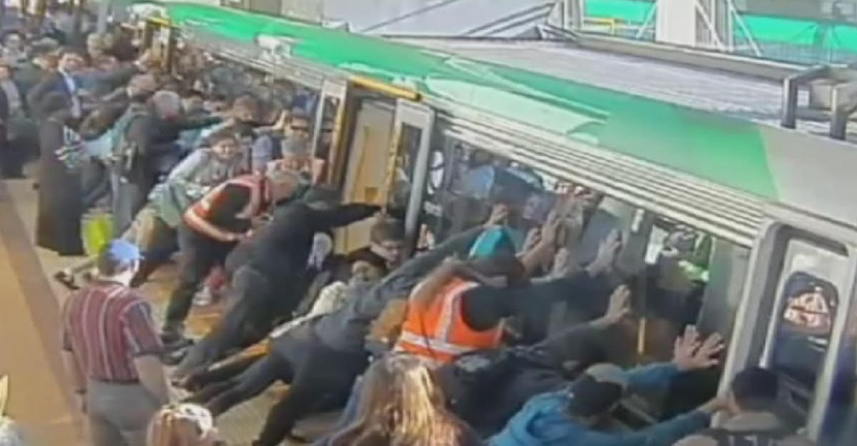 На распространенной в соцсетях видеозаписи видно как десятки собравшихся на платформе мужчин под руководством сотрудников службы безопасности сбоку толкают поезд на "раз, два, три". Это длится около минуты, а после слышится радостный возглас и аплодисменты - "заложник" поезда и платформы был успешно освобожден.