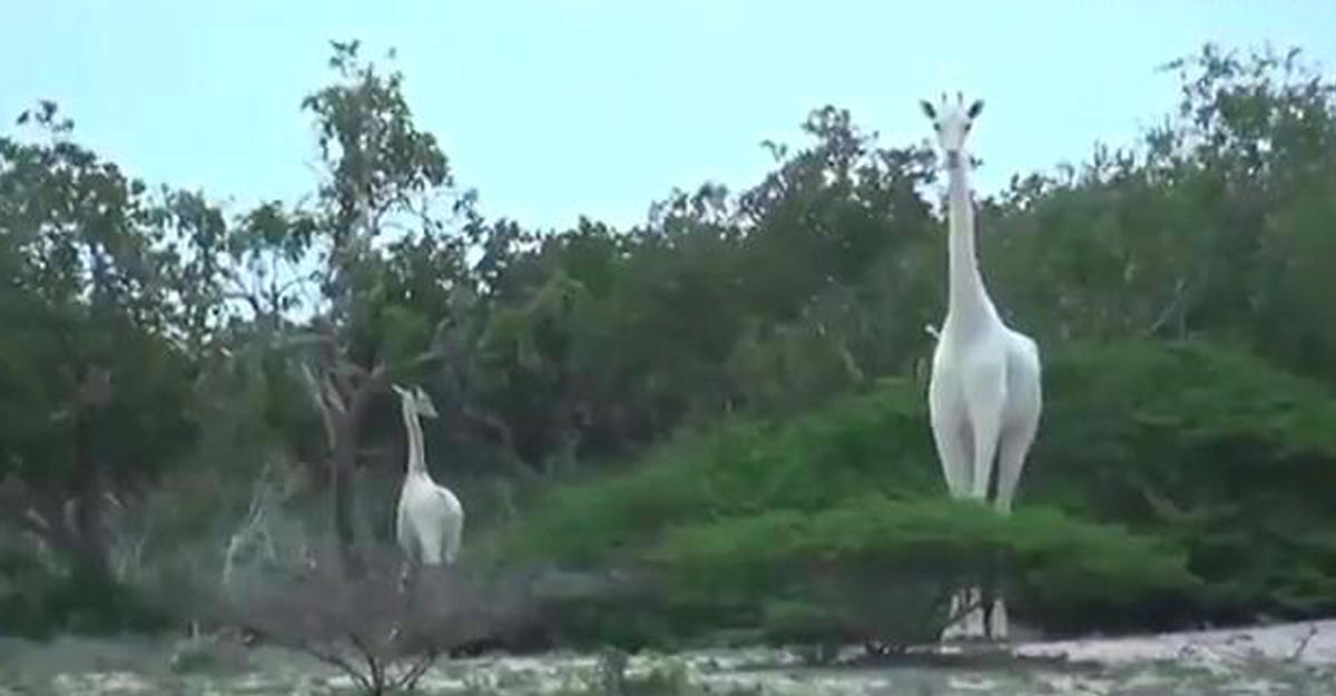 На кадры впервые попали редкие белые жирафы - ВИДЕО