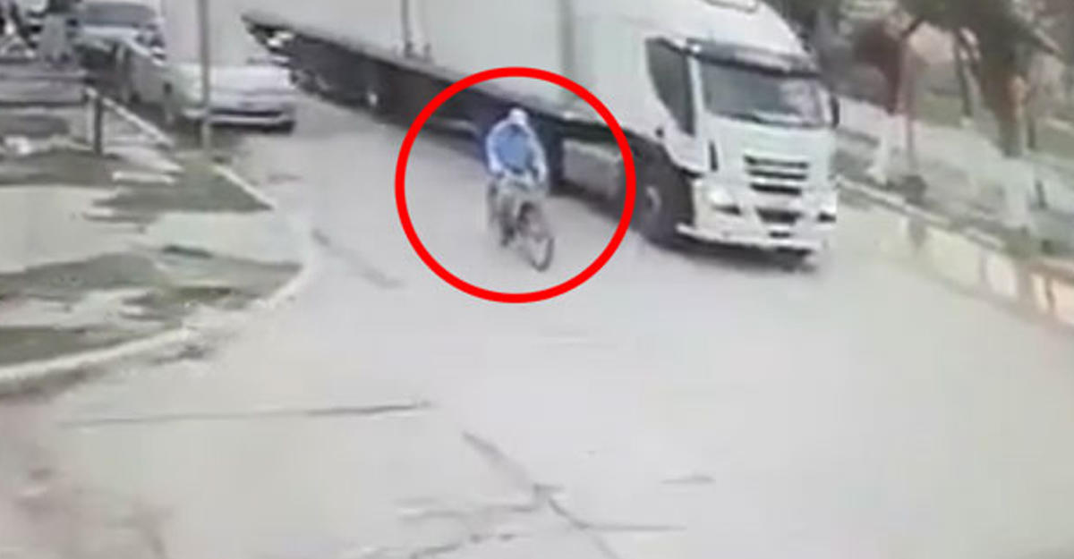 Day.Аz представляет видео, на котором запечатлена ужасная авария, ставшая причиной смерти велосипедиста. На кадрах видео видно, как водитель грузовика, не заметив едущего рядом велосипедиста, свернул с дороги, в результате чего велосипедист остался раздавленным под огромными колесами грузовика.