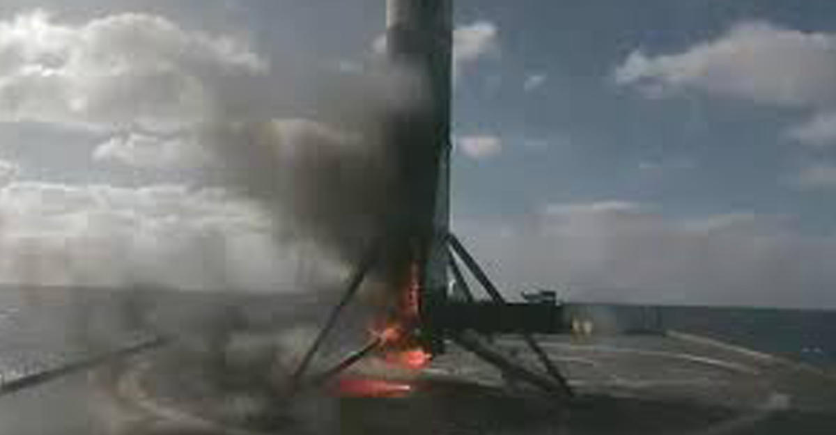 Первая ступень Falcon 9 загорелась после приземления на плавучую платформу - ВИДЕО