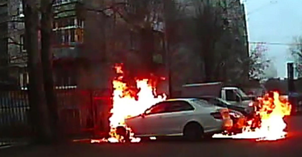 Хулиган поджег чужой Mercedes и загорелся сам - ВИДЕО