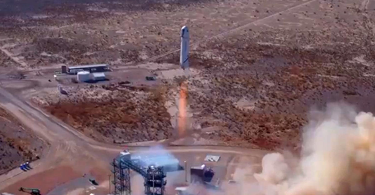 Ракета New Shepard 3 совершила вертикальную посадку, используя собственные двигатели. Капсула с манекеном человека, поднявшись на высоту более 100 километров, приземлилась на парашютах.