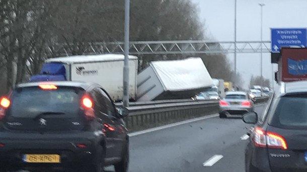 Сильный ветер привел к ряду ДТП на дорогах. В частности, в соцсетях распространяют фото, на которых видно, как грузовики буквально сносит с дороги ветром.