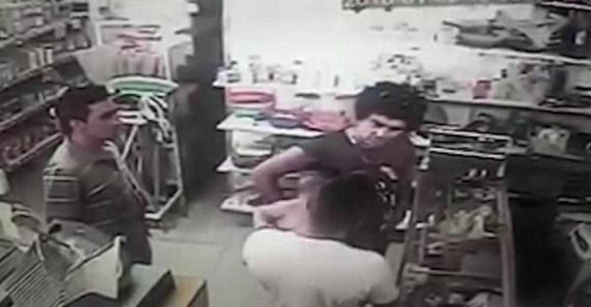 Ссора между двумя мужчинами - Густаво Месом и Херардо Гомесом Пересом - вспыхнула в супермаркете города Пальмира, Аргентина. Херардо держал на руках пасынка, но это не помешало Густаво полезть в драку, которую зафиксировали камеры видеонаблюдения, передает Day.Az со ссылкой на life.ru.