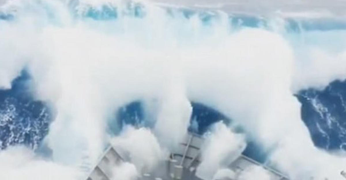 На видео показали огромную волну, поглотившую военный корабль - ВИДЕО
