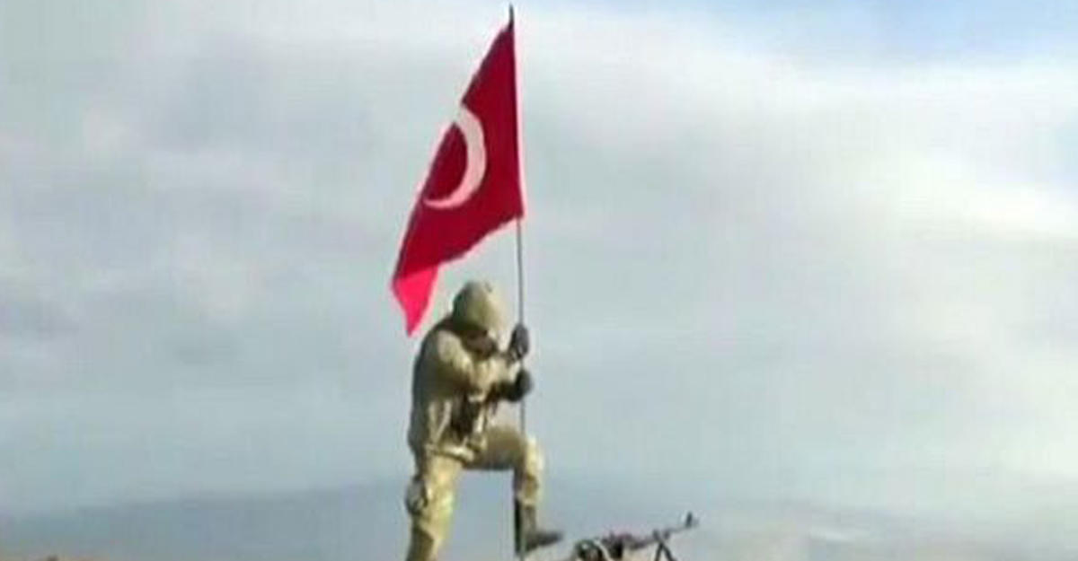 После очистки горы от террористов военнослужащий 57-го батальона спецназа ВС Турции водрузил флаг на ее вершине, с гордостью отметив, что эта победа посвящается турецкому народу.