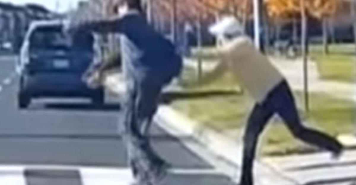 Автомобилист из Торонто (Канада), остановившийся на пешеходном переходе, случайно стал свидетелем драматического представления.