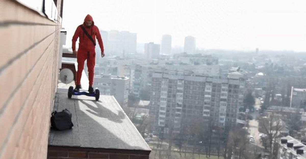 В российском Краснодаре экстремал прокатился на гироскутере по крышам домов и снял это безумие на видео, передает Day.Az со ссылкой на segodnya.ua.